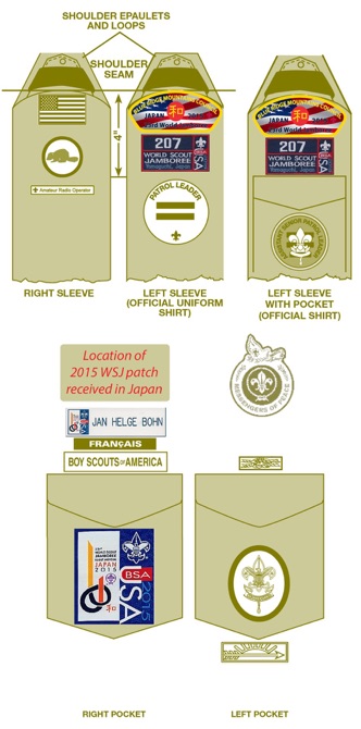 The BSA uniform looks like a Christmas tree compared to the Scout uniforms of most other countries. We will therefore not wear every patch we own, but select those that are relevant to WSJ Troop 207.